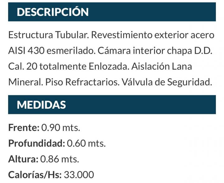 - INTERIOR DEL HORNO COMPLETAMENTE ENLOZADO PARA MEJOR Y FACIL LIMPIEZA